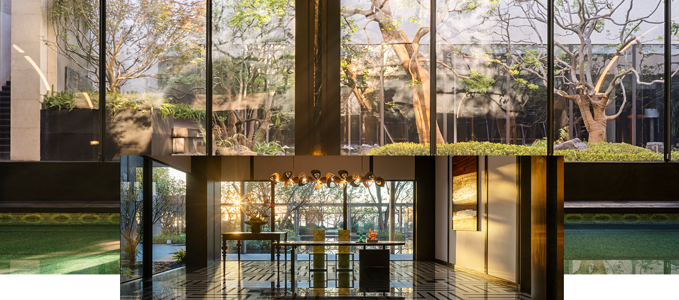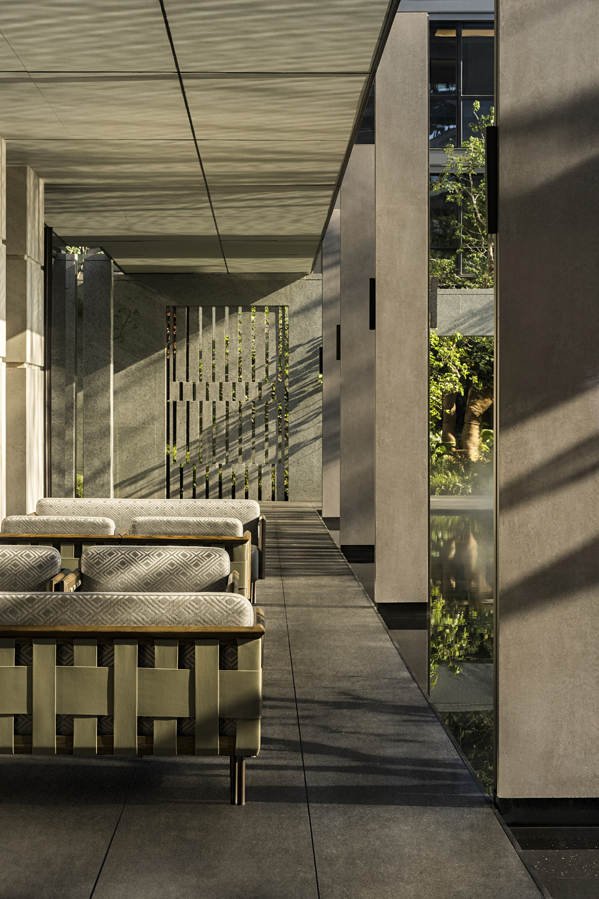 水域与绿植让空间如同打开的庭园一般,建筑不再是单纯的材料的堆砌,而是让空间因自然的介入而成为与人的羁绊,生长出情感的肌理。 建筑与诗词之境密切关联,传承历史与文化潜移默化的脉动,展开诗意语言背后隐含的愿景。